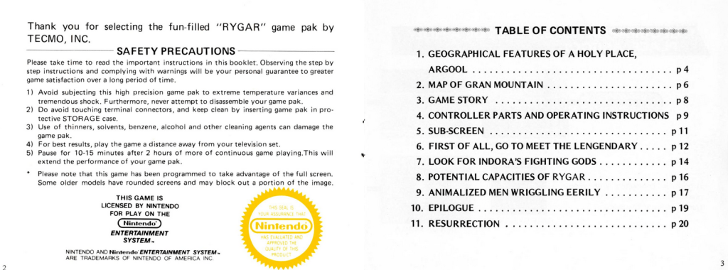 - Rygar Manual, Internet Archive: https://archive.org/details/rygar-neshiresscans